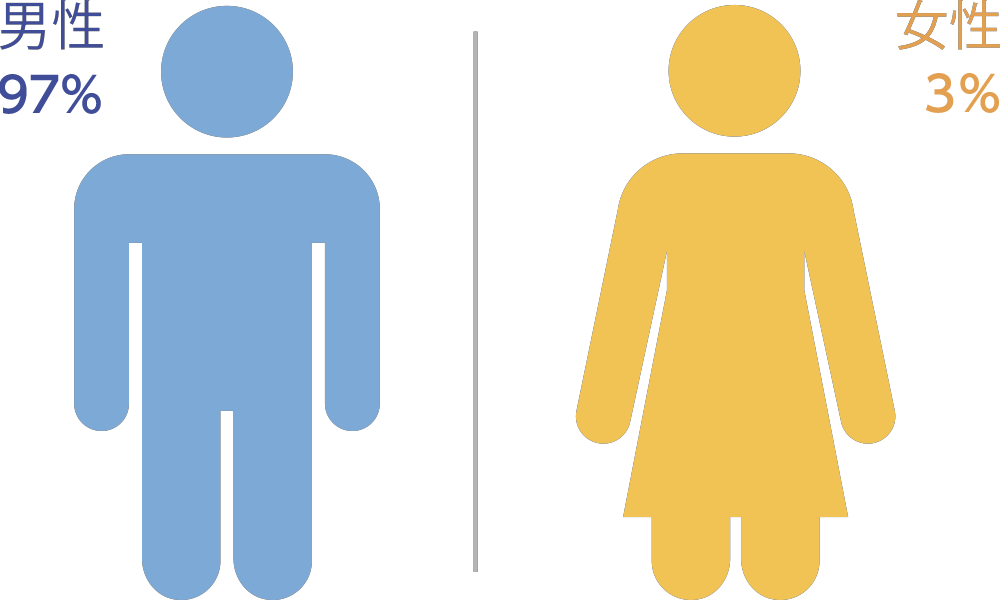 Ⅷ 因子、第Ⅸ 因子の異常が原因ほとんどが男性