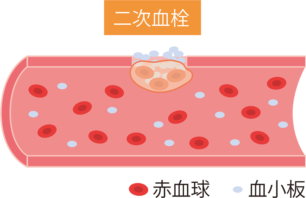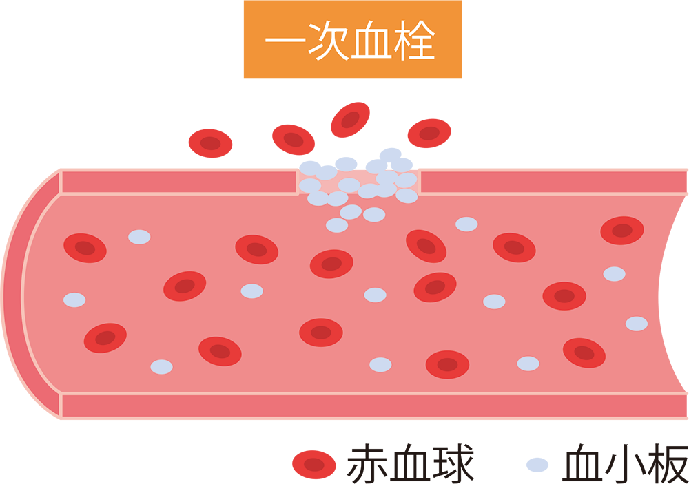 02「血小板」が傷口に集まってふたをする(一次血栓:もろい状態)